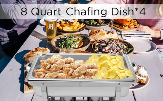 Pack of 4 Chafing Dish 8 Quart Stainless Steel Foldable Rectangular Chafer Full Size Food Pan Fuel Holder and Lid Food Warmers for Pary Banquet Buffets